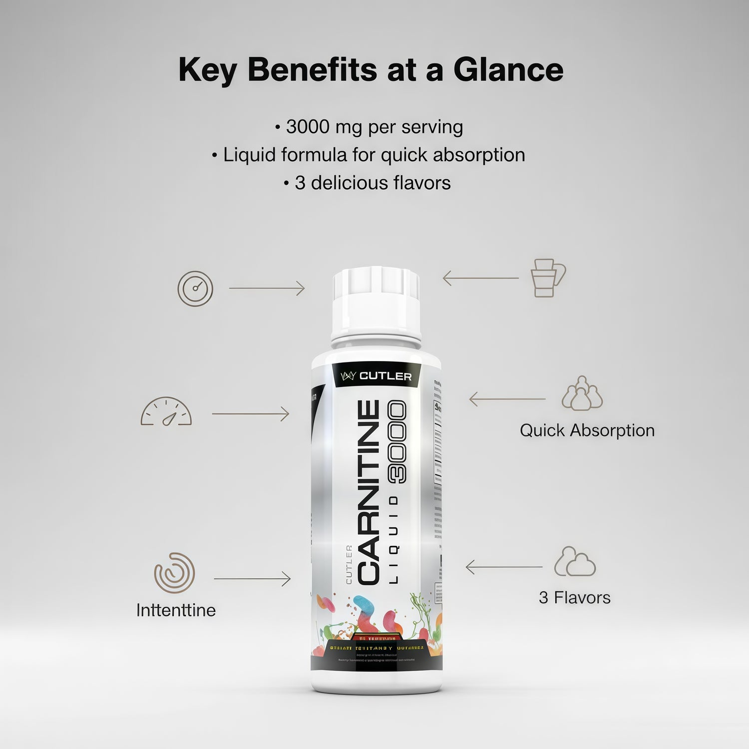 Cutler Nutrition’s Liquid L-Carnitine 3000™ delivers a potent 3,000 mg dose of pure L-Carnitine in every serving — designed to turn stored fat into clean, lasting energy. This fast-absorbing liquid formula helps support metabolism, enhance endurance, and accelerate recovery — all without caffeine or stimulants.