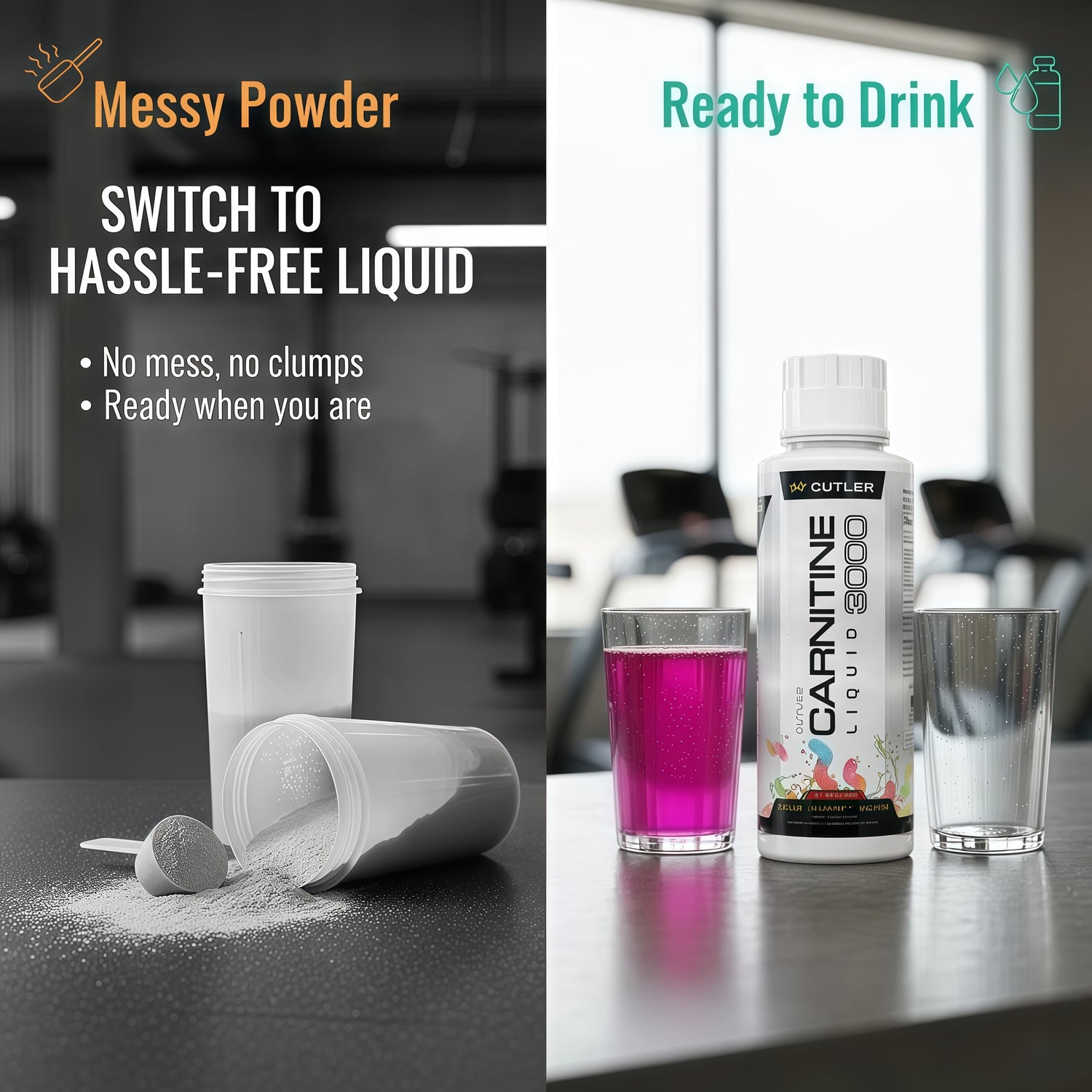 Tired of clumpy, messy powders? Switch to Liquid L-Carnitine 3000 — the clean, ready-to-drink solution for metabolism and energy support.